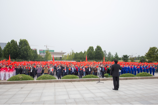 随后,在周宝全院长带领和指挥下,全院师生迎着飘扬的国旗激情共唱《今天是你的生日,我的中国》,在慷慨激越的歌声当中,在气壮山河的欢呼声中,全院师生挥舞五星红旗,共同为祖国祝福。