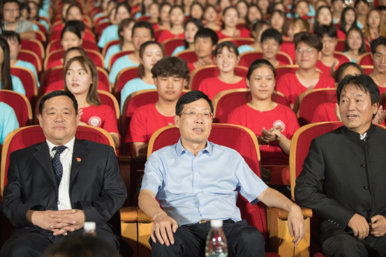 出席晚会的嘉宾有:河南省高校纪工委书记、省教育厅纪检组长、党组成员、河南省教育厅总督学李金川、省教育厅体育卫生艺术教育处处长聂世忠、省教育厅体育卫生艺术教育处副处长李宗英省文化和旅游厅非遗处副处长祝欣、“不忘初心、牢记使命”主题教育省委高校工委第五巡回指导组组长、中原工学院原党委副书记郭正让及指导组全体成员;中国剧协副主席、省剧协主席、全国人大代表、河南省委委员、河南豫剧院院长、著名表演艺术家李树建,河南省舞蹈家协会主席、秘书长孔夏等有关领导以及教育部艺术教育委员会委员、省音乐家协会副主席、郑州大学音乐学院教授巩伟、郑州工程技术学院宣传部部长吕村等兄弟院校的代表以及媒体界的朋友。