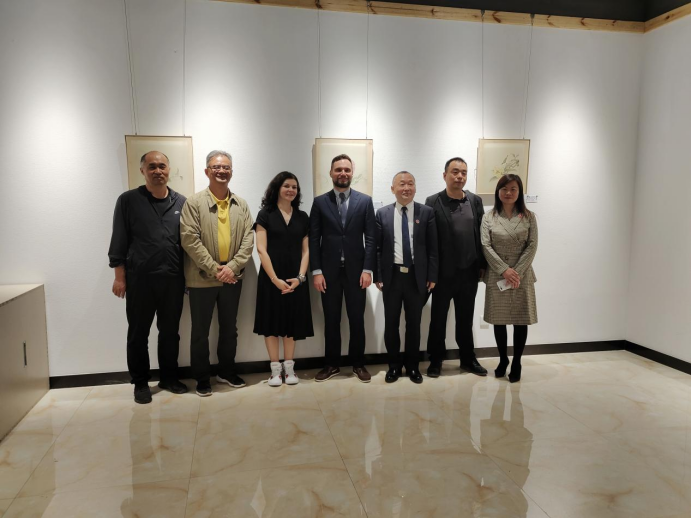 韩院长给白俄罗斯友人认真详尽讲解了宋代院体花鸟画应物象形、随类敷彩的艺术特色和中国传统工笔花鸟画特点、制作流程。国际友人对我院一年级的学生有如此娴熟和较高水准的作品大加赞赏。观摩结束之后,校领导对这次展览进行了赞扬的同时,也提出了更高的要求。