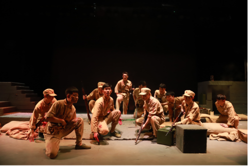这次汇报演出从首排到即将演出历时三个月。排练期间,为了真实体验战场上极度缺水的严峻形势,高强度的排练下,演员们一天只分一瓶水,这种感同身受的扎实体验,才能让演员在舞台上表现出最真实的一面。