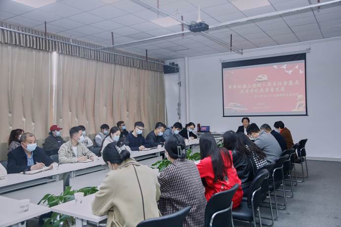 周校长指出,全校各单位要坚持把学习贯彻党的二十大精神贯穿到各项工作中。既要系统的通篇细读,又要重点探讨,既要自上而下学习贯彻,又要结合具体工作自下而上的落实,双向驱动,共同发力,全方位掀起深入学习贯彻、广泛宣传落实的高潮,用党的二十大精神指导和推动学校高质量发展。同时强调,立德树人根本任务的基点和具体工作在二级学院,要抓好二级学院教师这个育人群体和学生这个成才主体的学习提升;创新班级管理机制,老师们都要融入班级、课堂和宿舍,打破辅导员或班主任的单一责任制,实现教育教学思想和能力提升的双赢。