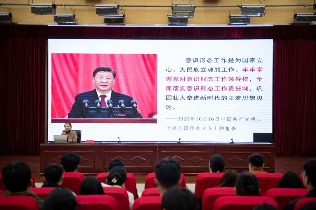 10月30日下午,中共河南省委党校(河南行政学院)义务宣讲团走进河南艺术职业学院,在报告厅成功举办习近平文化思想专题宣讲会。省委党校赵艺扬老师担任主讲。全校青年教师代表、入党积极分子约600人参加学习。