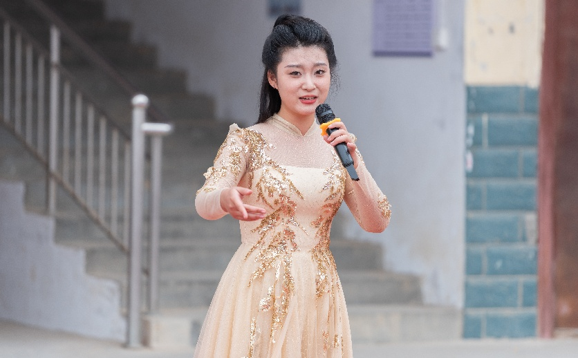 戏曲专业教师齐佳玉带来的豫剧《朝阳沟》“祖国的大建设一日千里”选段,唱腔激昂,情感充沛,唱出了新时代的奋斗激情。